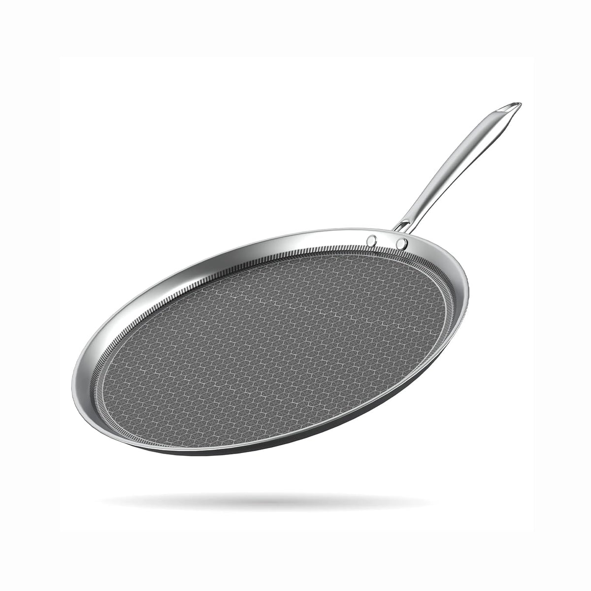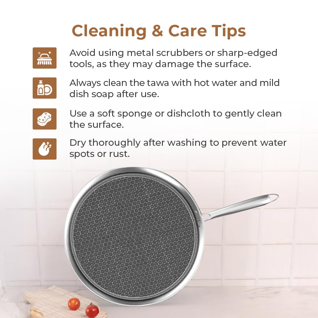 Tri-Ply Honeycomb Dosa Tawa | 30 cm |Induction & Gas Compatible | Tawa for Dosa, Uthappam, Chapati, Roti, Naan | Metal Spatula Safe | Riveted Handle | Toxin-Free Cookware - 27 Cm